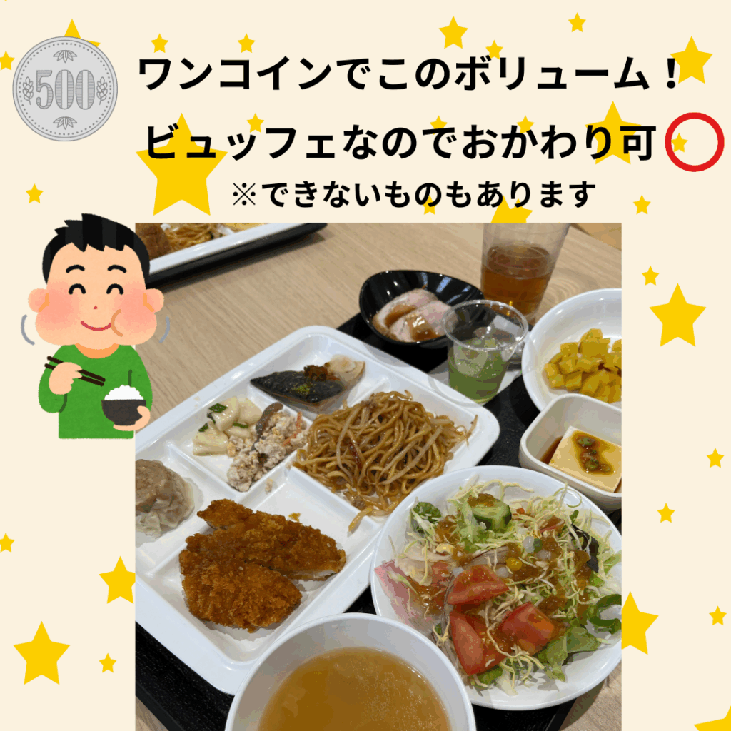 おひとり様◯個まで と制限があるものもありますが、この物価高の中、500円でランチが食べられるのはありがたいですよね😭😭バローグループの人だけでなく、一般の方も利用できますので是非ご利用ください✨