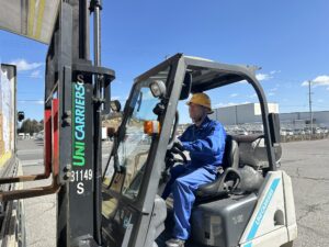 10トントラックでの配送。取引先様にある荷物を集荷してきたら、物流センターでおろします。